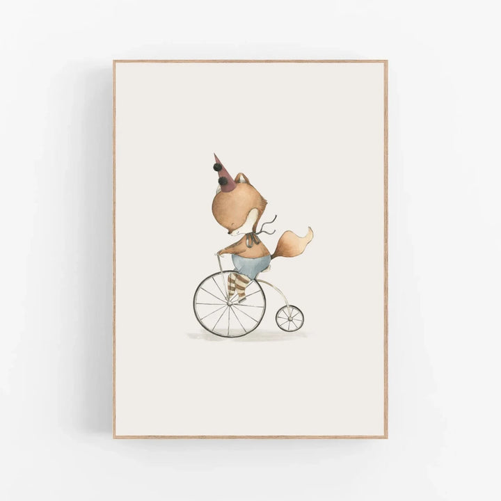 Poster 1: Circusartiest het vosje fietst op een tweewieler rond.