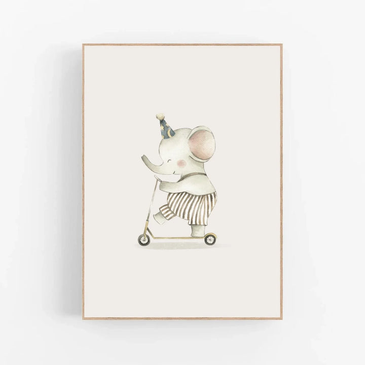 Poster 3: Het circus olifantje stept rond op zijn prachtige step.