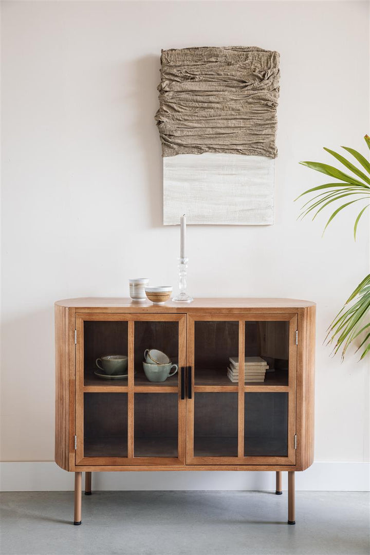 Het MF living dressoir Yaz is een stijlvol en praktisch meubelstuk, perfect voor liefhebbers van een modern interieur met een vleugje retro. Dit dressoir is gemaakt van hoogwaardig hout en heeft een uniek patroon aan de zijkanten, wat het meubel een verfijnde en karakteristieke uitstraling geeft. Gebruik het dressoir om je woon- of eetkamer te verrijken met een elegante opbergruimte.