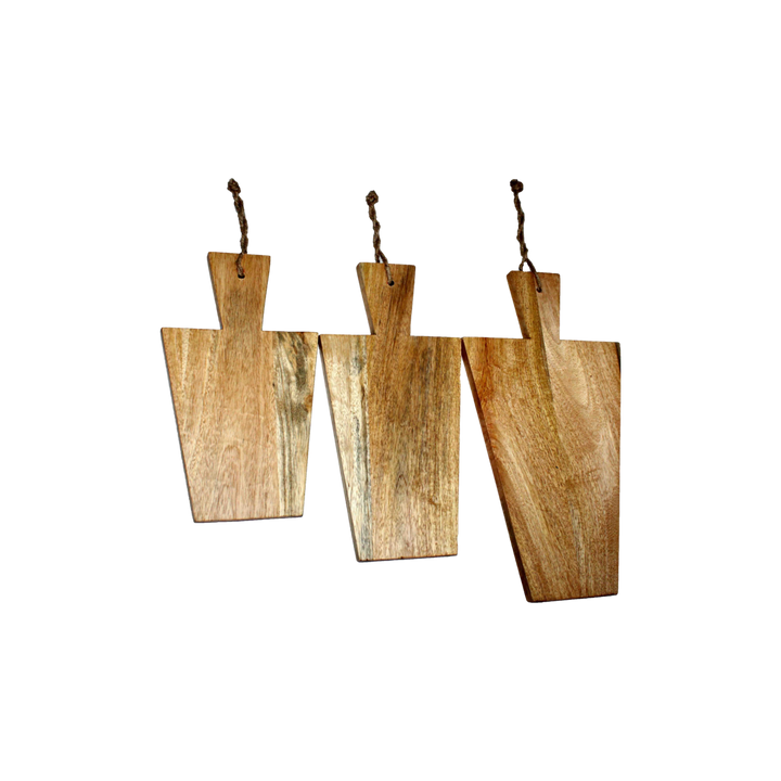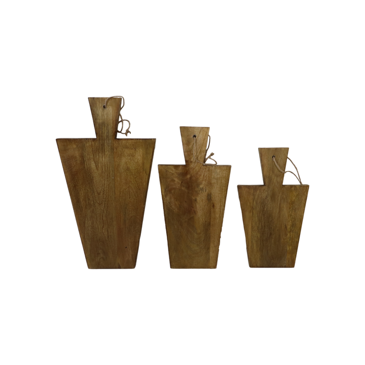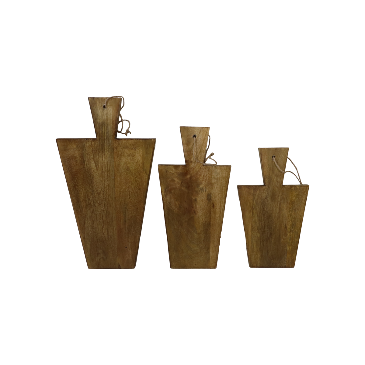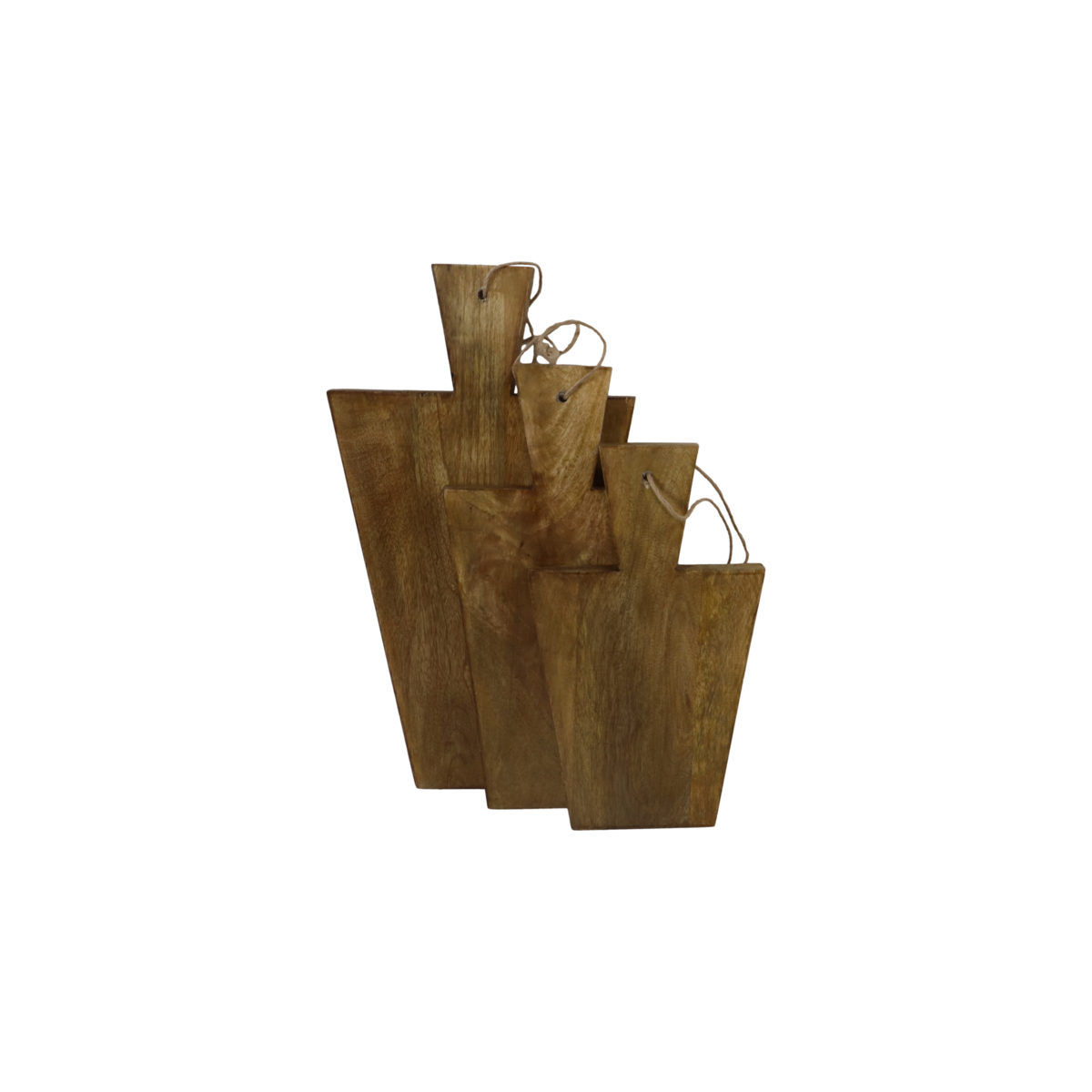 Snijplanken zijn ideaal in de keuken, maar ook om als decoratie in het interieur te gebruiken. Deze prachtige set van 3 planken is gemaakt van mangohout. De planken hebben verschillende afmetingen. In het mangohout kunnen natuurlijke kleurverschillen voorkomen, wat elke plank uniek maakt.