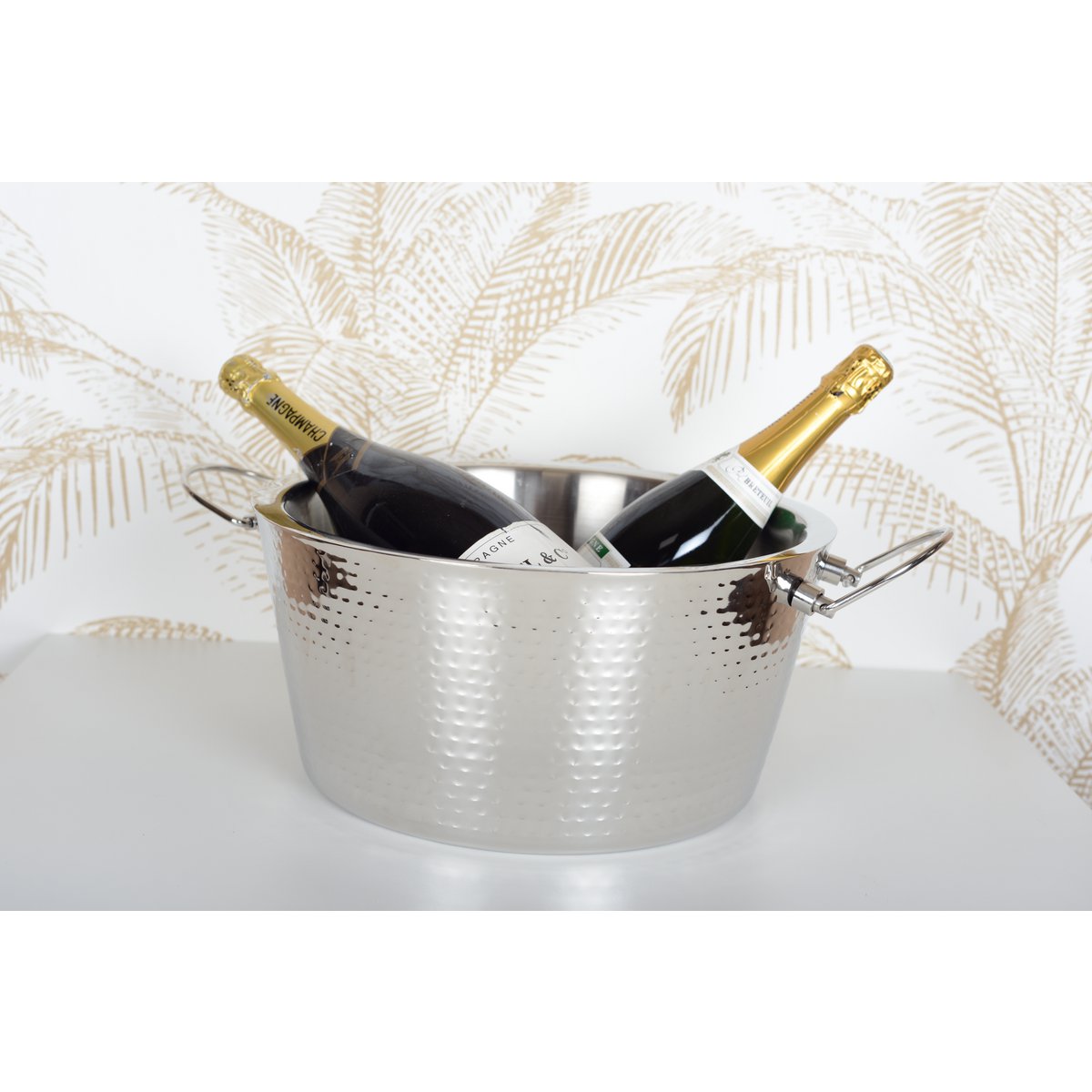 Dubbelwandige magnum emmer van gehamerd roestvrij staal, kan tot 6 flessen bevatten Aulica is een Frans merk gespecialiseerd in serviesgoed VAATWASMACHINEBESTENDIG: Nee VOEDSELVEILIG: Ja MAGNETRONBESTENDIG: Nee OVENBESTENDIG Nee