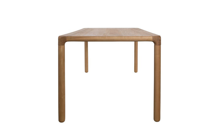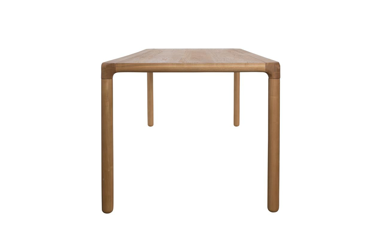 Storm heeft mooie ronde afgewerkte vormen, een dik houten tafelblad en robuuste tafelpoten. Deze combinatie maakt het een statement piece. De tafel is gemaakt van essenhout, heeft een mooi v-groef patroon en is verkrijgbaar in verschillende maten, vormen en aardse kleuren.