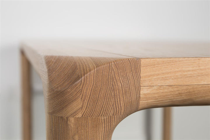 - Heb je die knap geconstrueerde essenhouten poten gezien die uit het tafelblad lijken te vloeien? Moeten we nog meer zeggen?