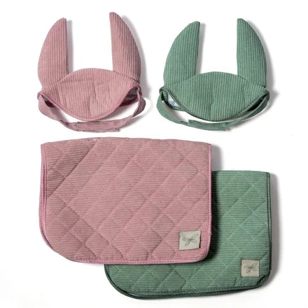 Zadeldekje en Mutsje corduroy roze voor stokpaard